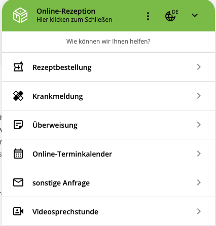 - Öffnen Sie unsere Online-Rezeption über den entsprechenden Button auf unserer Website